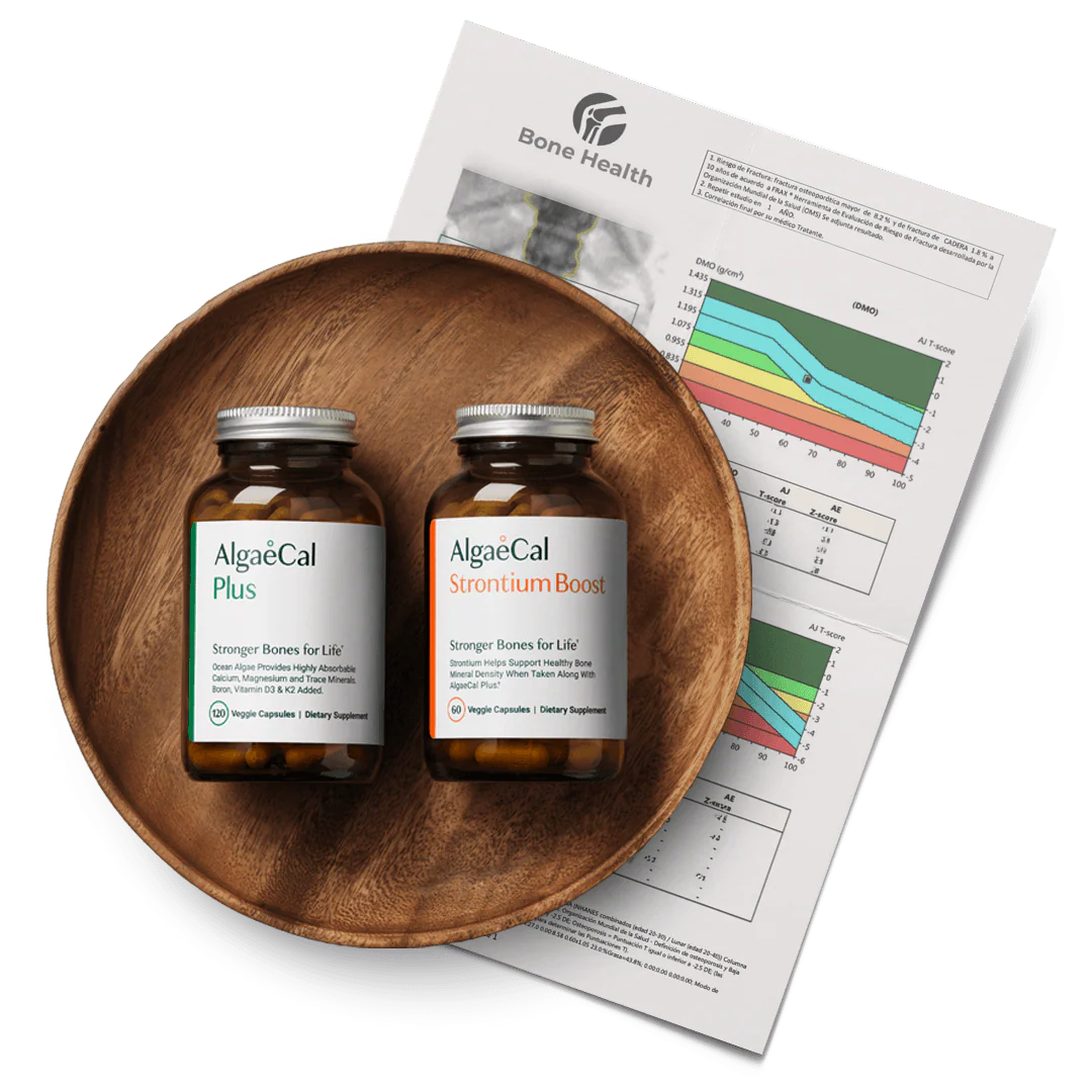 AlgaeCal Plus contains 16 bone-supporting nutrients – including our organic ocean calcium, boron, magnesium, vitamin C, vitamin D3, and vitamin K2-7. This unique formulation was the first – and still only – calciumclinically supported to increase bone density.